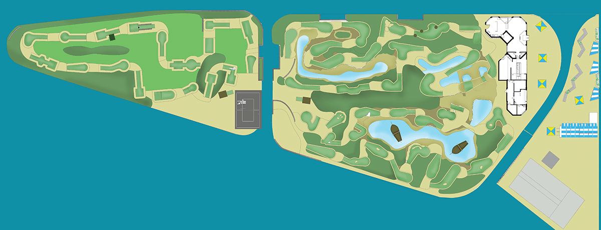 We are on the seafront, in Hastings Old Town towards the eastern end of the promenade & about 5 minutes walk from the fishing quarter. The main road (seafront) is the A259 main coast road between Eastbourne in the west & Dover in the east. As you walk or drive along Hastings seafront, you cannot fail to see the courses and the fountains, palm trees & gardens of the Adventure Golf.